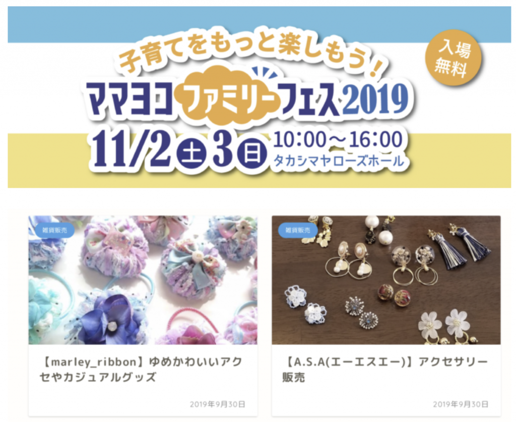 ママヨコファミリーフェス2019開催。親子4,000人を動員・横浜のママ団体が集結。横浜タカシマヤ ローズホールにて [2019年11月2日(土)、3日(日)] 2025年9月14日2025年10月3日 ママヨコファミリーフェス2019開催。親子4,000人を動員・横浜のママ団体が集結。横浜タカシマヤ ローズホールにて [2019年11月2日(土)、3日(日)] 横浜各区のママ団体と合同で開催。会場は横浜タカシマヤ ローズホール。2日間で4000人の親子が来場。 https://mamayoko.net